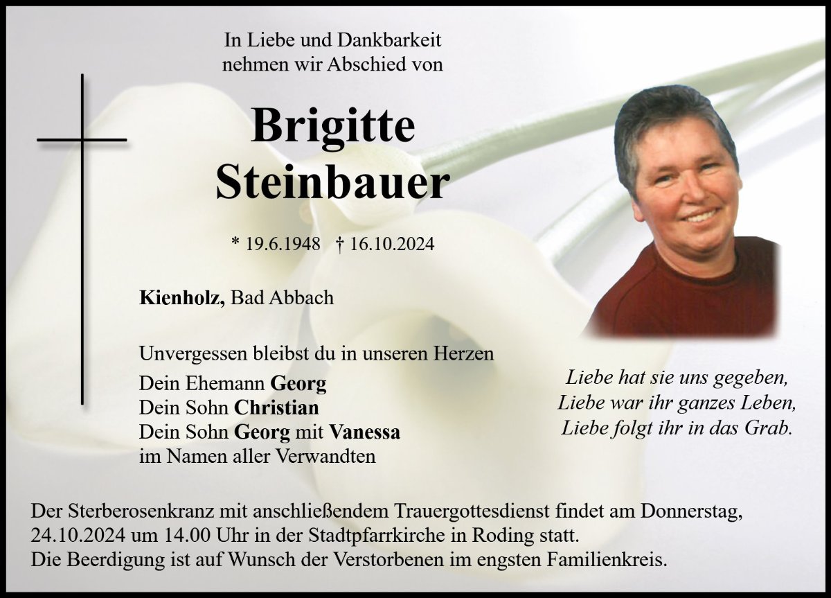 Liebe Familie Steinbauer, wir wünschen euch viel Kraft in dieser schweren Zeit.