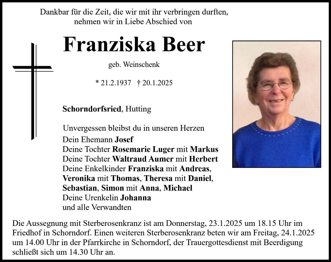 Franziska Beergestorben am 20. Januar 2025