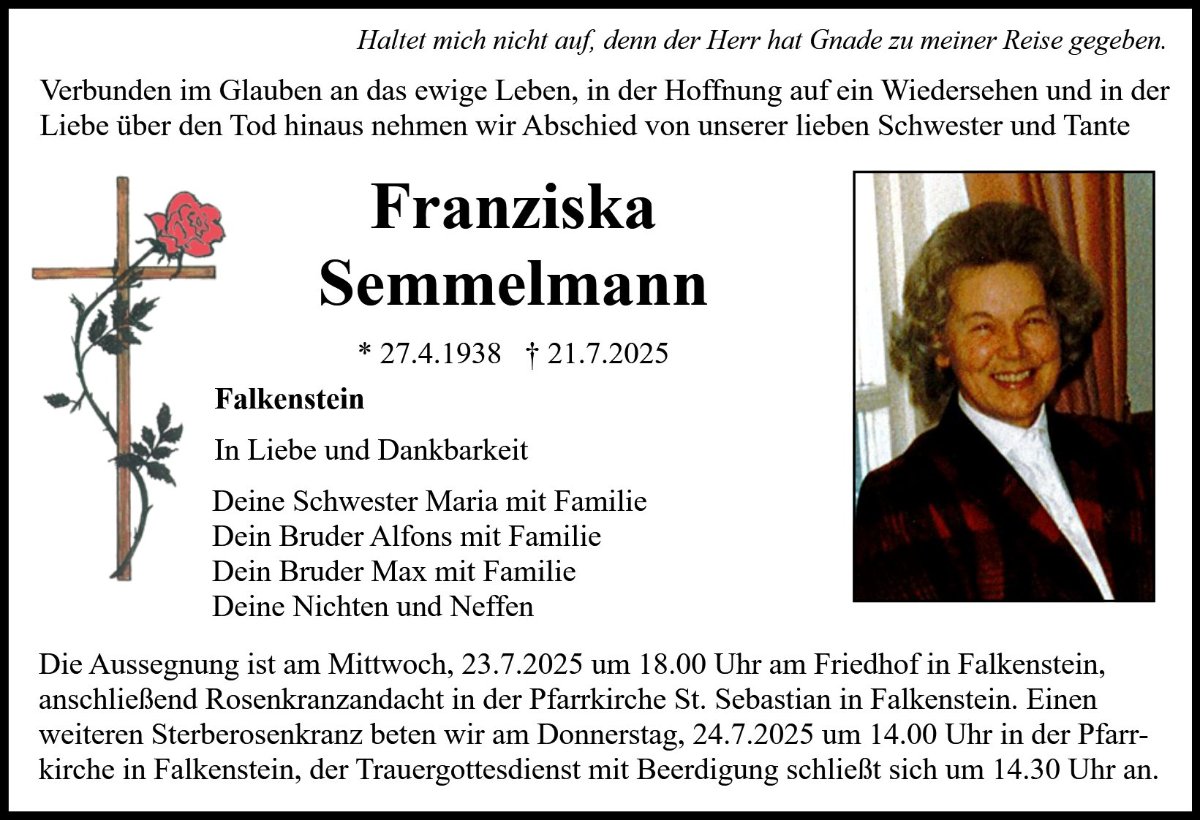 Franziska Semmelmanngestorben am 21. Juli 2025