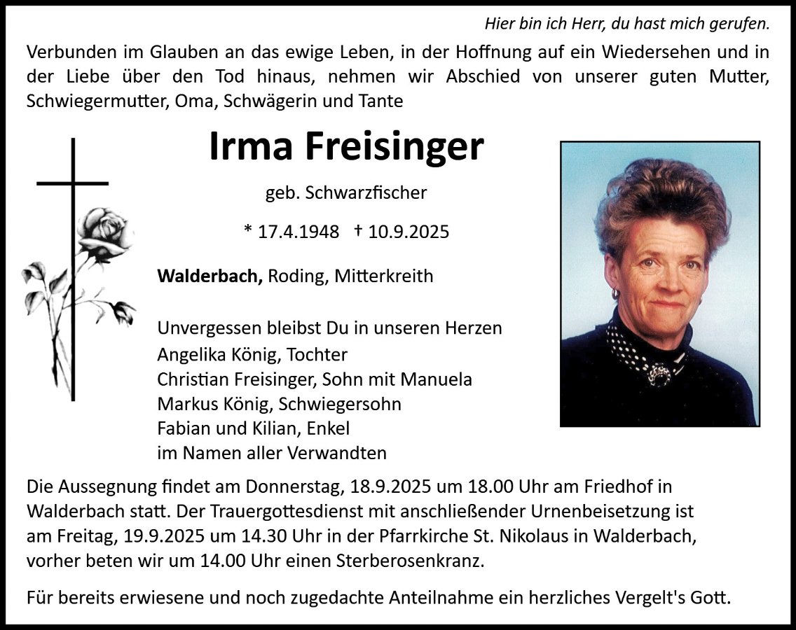 Irma Freisingergestorben am 10. September 2025