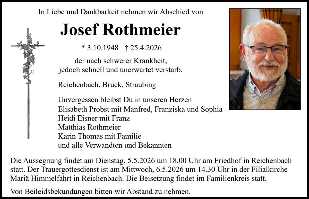 geboren am 3. Oktober 1948 in Roßbach gestorben am 25. April 2026 in Regensburg