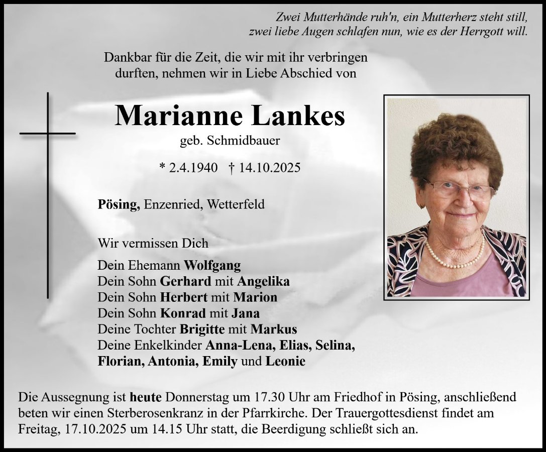 Marianne Lankesgestorben am 14. Oktober 2025