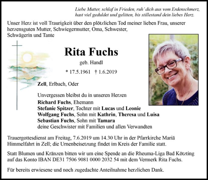 Ich wünsche euch ganz viel Kraft und immer einen Blick zu Rita nach oben.