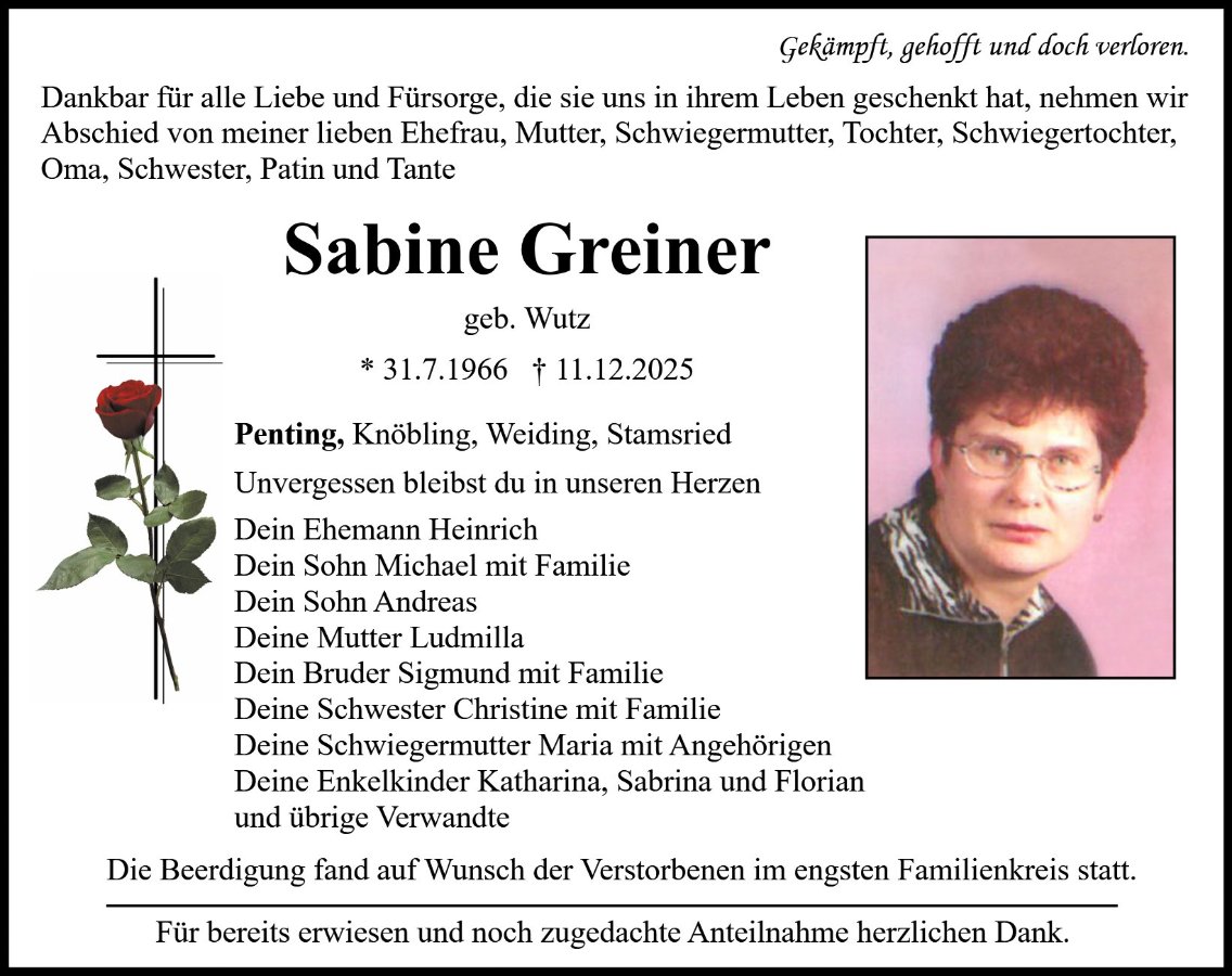 Sabine Greinergestorben am 11. Dezember 2025